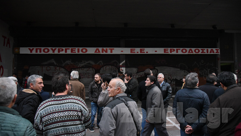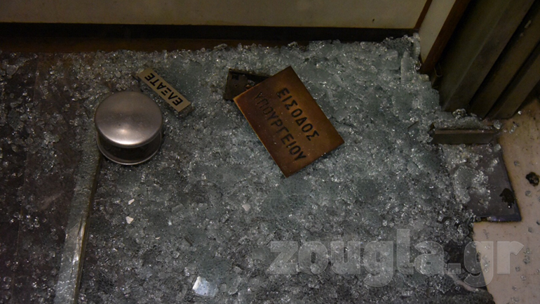 Οι διαδηλωτές, αφού ζήτησαν να συναντηθούν με την Υπ. Εργασίας Έφη Αχτσιόγλου, παραβίασαν τα ρολά της εισόδου και εισήλθαν στον εσωτερικό χώρο του υπουργείου. Εκεί προκάλεσαν ζημιές και άλλαξαν την επιγραφή πάνω από την είσοδο.