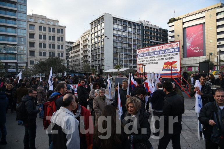 Νωρίτερα το απόγευμα της Τρίτης το ΠΑΜΕ πραγματοποίησε συγκέντρωση στην πλατεία Ομονοίας, την οποία ακολούθησε η πορεία προς τη Βουλή.