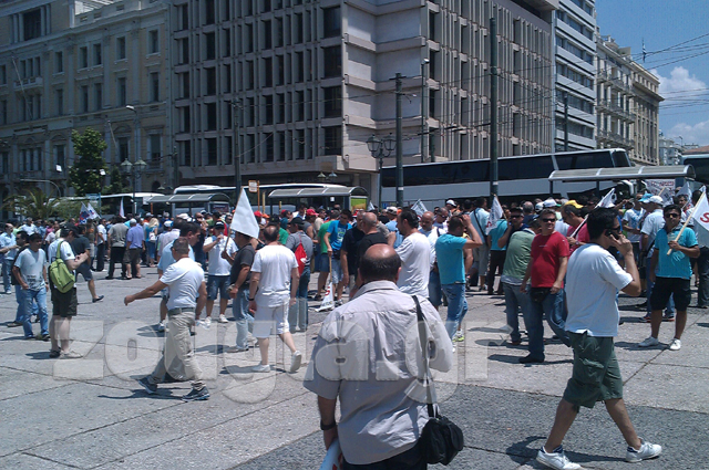 Από τις 12.30 το μεσημέρι οι εργαζόμενοι πραγματοποίησαν συγκέντρωση διαμαρτυρίας στην πλατεία Κλαυθμώνος.  Στη συνέχεια έκαναν πορεία, βρέθηκαν έξω από το Υπουργείο Οικονομικών και κατέληξαν έξω από τη Βουλή.