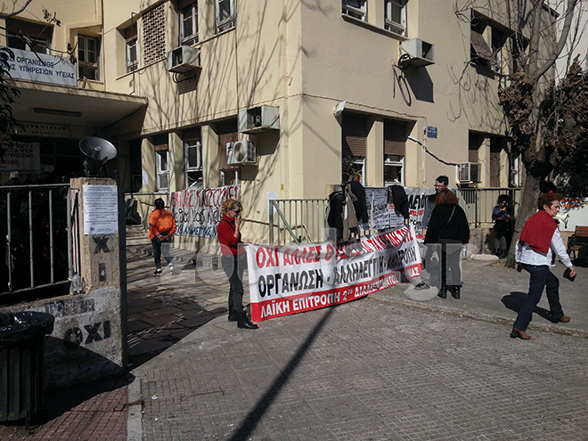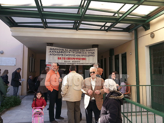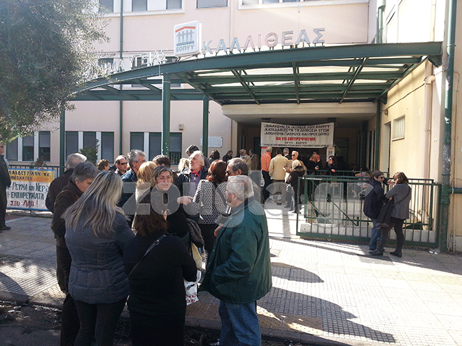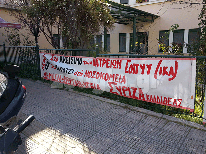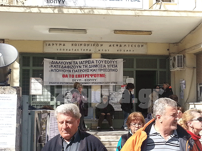 Την ίδια ώρα και στο ΙΚΑ του Νέου Κόσμου υπάρχουν συγκεντρωμένοι που αντιδρούν στο κλείσιμο των πολυιατρείων.