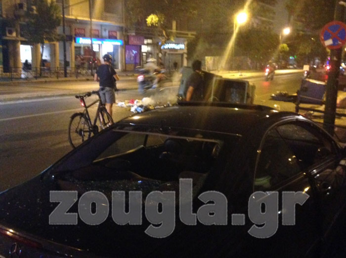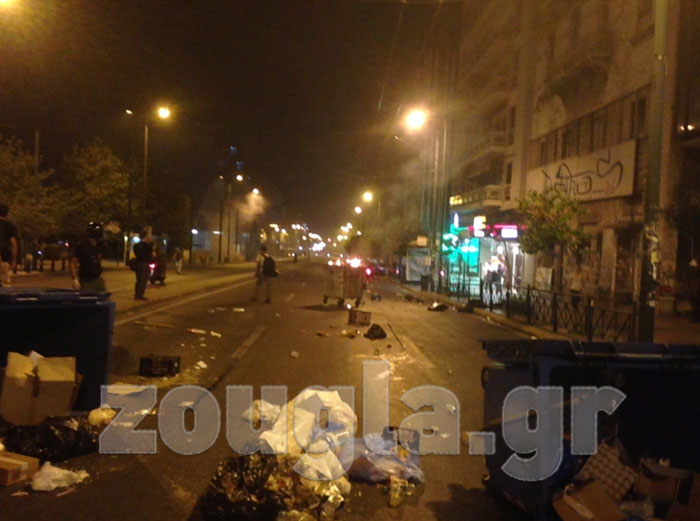 Το κέντρο της Αθήνας επί δύο περίπου ώρες έμοιαζε με πεδίο μάχης. Καμένοι κάδοι, χημικά, μολότοφ και ρίψη αντικειμένων συνέθεταν το σκηνικό στην πλ. Συντάγματος και στους πέριξ δρόμους.