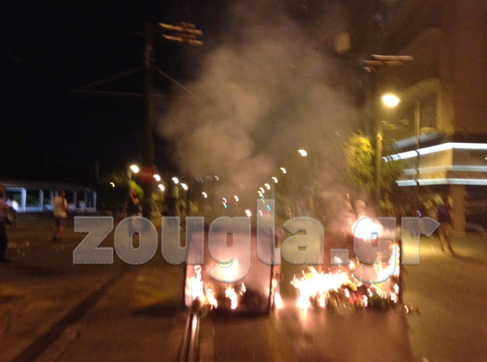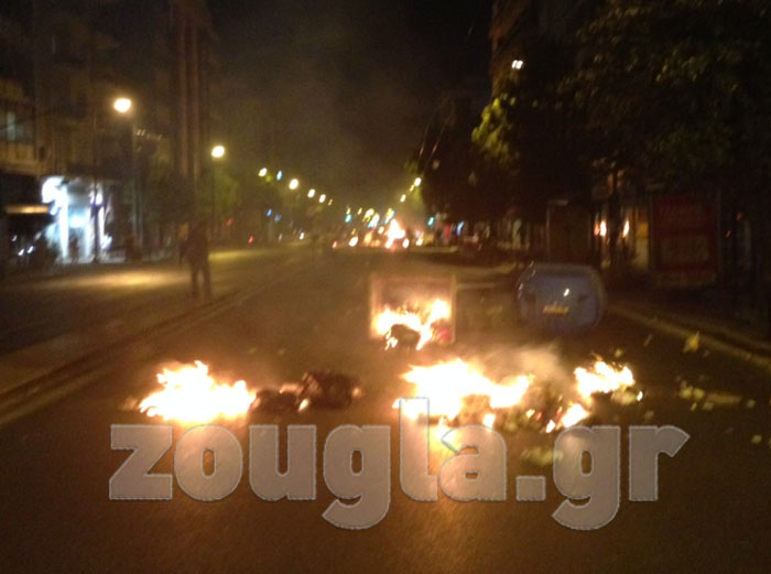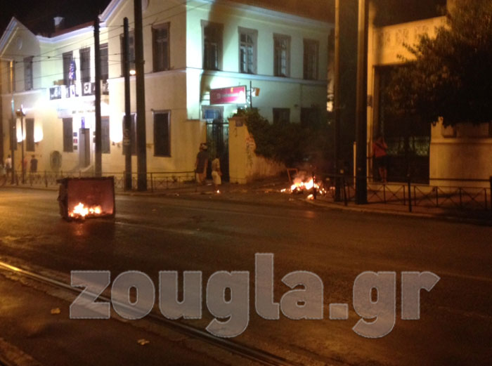 Περίπου 200 διαδηλωτές, λίγα λεπτά μετά τις 21.00 το βράδυ, επιτέθηκαν με μολότοφ σε διμοιρίες των ΜΑΤ που απάντησαν με χρήση χημικών, ενώ στις φλόγες τυλίχθηκε βαν του τηλεοπτικού σταθμού ΑΝΤ1 στην οδό Β. Αμαλίας.