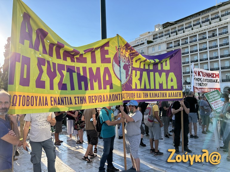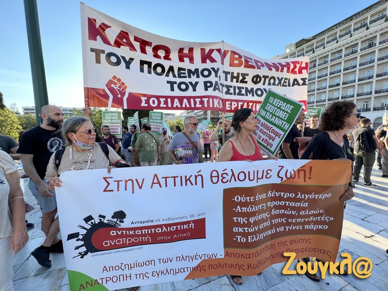 Η δεύτερη συγκέντρωση αφορούσε τη διαμαρτυρία δεκάδων πολιτών για την περιβαλλοντική καταστροφή που συντελείται από τις δεκάδες πυρκαγιές που κατακαίνε τη χώρα τις τελευταίες εβδομάδες, και στην οποία συμμετείχαν διάφορες οργανώσεις και συλλογικότητες.
