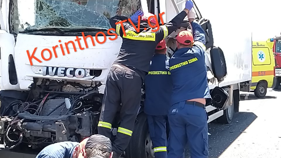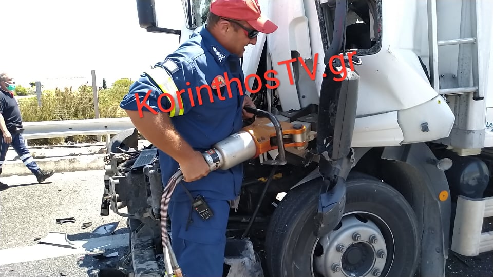 Τροχαίο ατύχημα σημειώθηκε στο 64 χλμ Νέας Εθνικής Οδού Αθηνών-Κορίνθου στο ύψος των Αγίων Θεοδώρων, όταν για άγνωστο λόγο φορτηγό «καρφώθηκε» κυριολεκτικά στο πίσω μέρος προπορευόμενης νταλίκας με αποτέλεσμα να εγκλωβιστεί ο οδηγός.