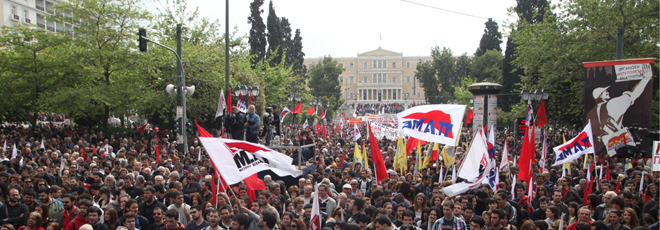 Στην πλατεία Κλαυθμώνος συγκεντρώθηκαν στις 11.00 οι συνδικαλιστές της ΓΣΕΕ και της ΑΔΕΔΥ καθώς και τα πρωτοβάθμια σωματεία, για την απεργιακή τους κινητοποίηση λόγω Πρωτομαγιάς, ενώ το ΠΑΜΕ που πρόσκειται στο ΚΚΕ, για πρώτη φορά τα τελευταία χρόνια, πραγματοποιεί τη συγκέντρωσή του στο Σύνταγμα από τις 10.30.