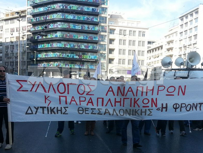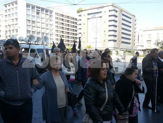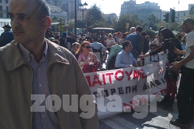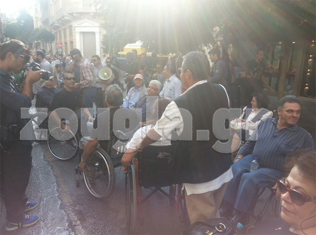 Μία ώρα μετά, στις 11.00, περίπου 100 άτομα με αναπηρίες συγκεντρώθηκαν επί της οδού Σταδίου 29 και κατευθύνθηκαν προς το Υπ. Εργασίας ενώ η πορεία κατέληξε στο Υπ. Οικονομικών, όπου αντιπροσωπεία τους ζήτησε να συναντηθεί με τον υπουργό, Γιάννη Στουρνάρα.