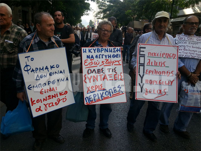 Την ίδια ώρα, περίπου 1.000 συνταξιούχοι συγκεντρώθηκαν στην πλ. Κοτζιά, προκειμένου να διαμαρτυρηθούν για τις άδικες – όπως τις χαρακτηρίζουν – μειώσεις των συντάξεών τους αλλά και τις περικοπές στην Υγεία.