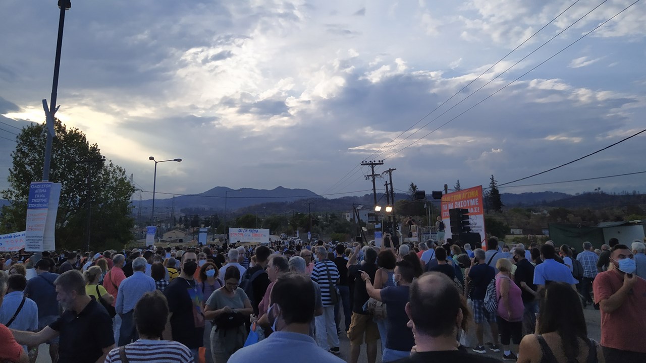 «Θέλουμε να μείνουμε στον τόπο μας» ήταν το σύνθημα το οποίο κυριάρχησε στο συλλαλητήριο που οργανώθηκε στις 7 το απόγευμα του Σαββάτου στον κόμβο της Στροφυλιάς στη Βόρεια Εύβοια.