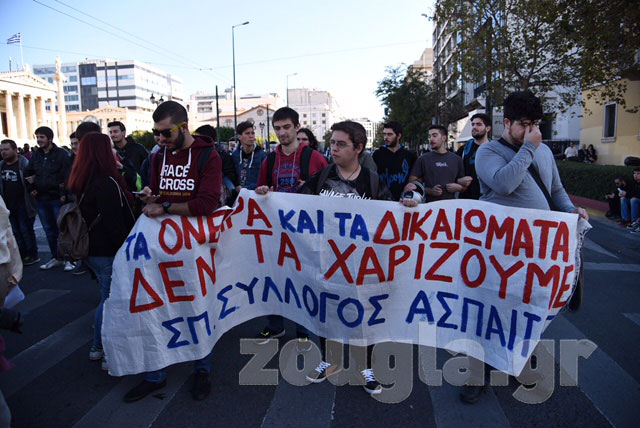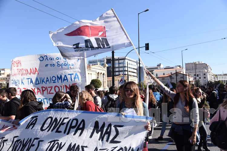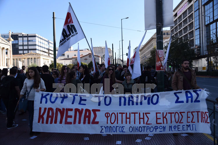 Στους δρόμους βγήκαν οι φοιτητές – σπουδαστές με αποφάσεις 90 φοιτητικών συλλόγων, οι οποίοι διαδηλώνουν σήμερα σε 17 πόλεις σε όλη τη χώρα διεκδικώντας αποκλειστικά δημόσιες και δωρεάν σπουδές υψηλού επιπέδου, ενάντια στο μαύρο μέτωπο κυβέρνησης – ΕΕ – ΔΝΤ.