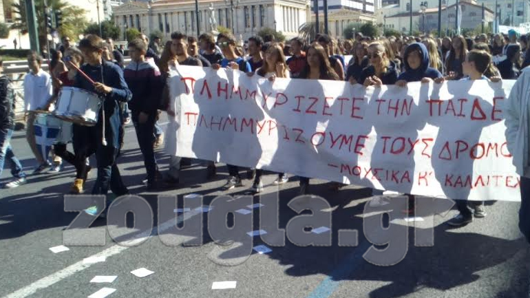 Στις 12.00 ξεκίνησε το μαθητικό συλλαλητήριο στα Προπύλαια, ενώ προηγήθηκε συναυλία στις 10.00 στον ίδιο χώρο.