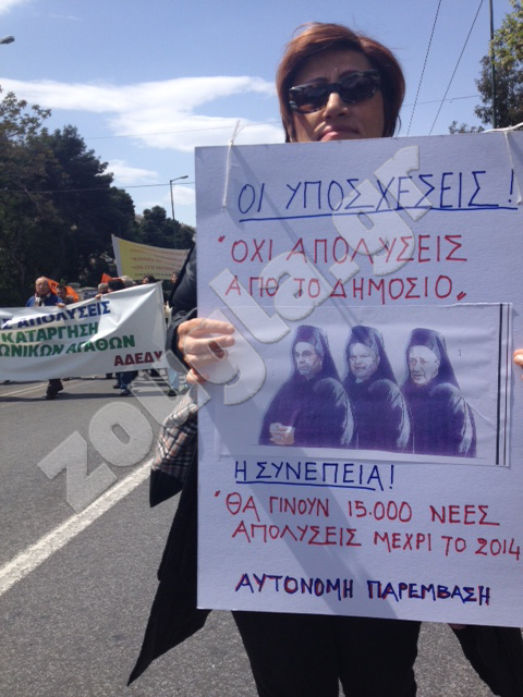 Η κινητοποίηση πραγματοποιήθηκε μετά τις πρόσφατες ανακοινώσεις για επικείμενες απολύσεις δημοσίων υπαλλήλων.