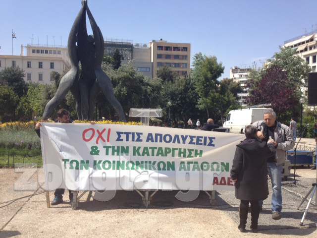 Η ΑΔΕΔΥ είχε προγραμματίσει για σήμερα συλλαλητήριο στην πλατεία Κλαυθμώνος, το οποίο ξεκίνησε στις 12.30. Ακολούθησε πορεία προς το υπουργείο, που πέρασε μπροστά από τη Βουλή. Λόγω της πορείας έκλεισε η οδός Σταδίου.