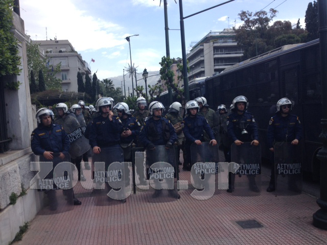 (Δυνάμεις των ΜΑΤ έξω από το Υπ. Διοικητικής Μεταρρύθμισης)