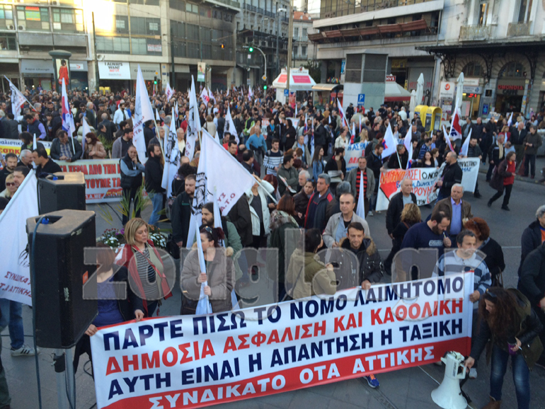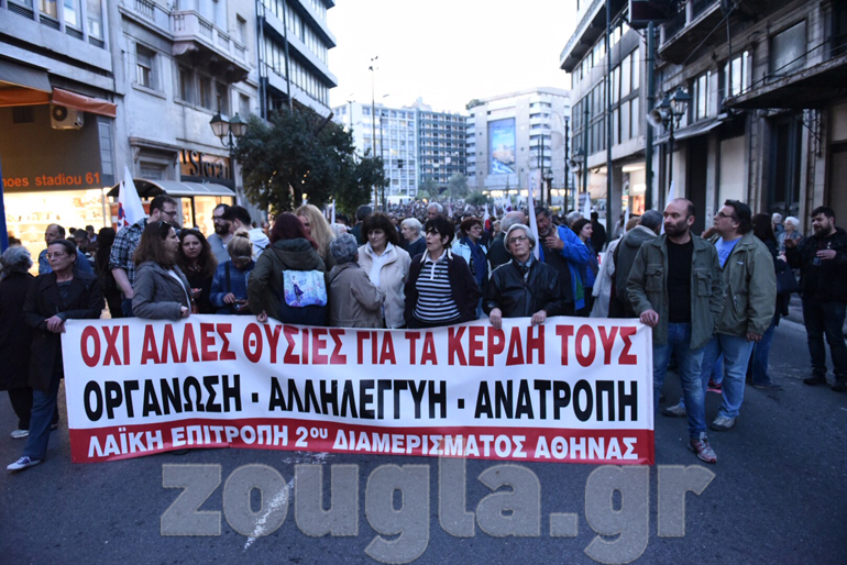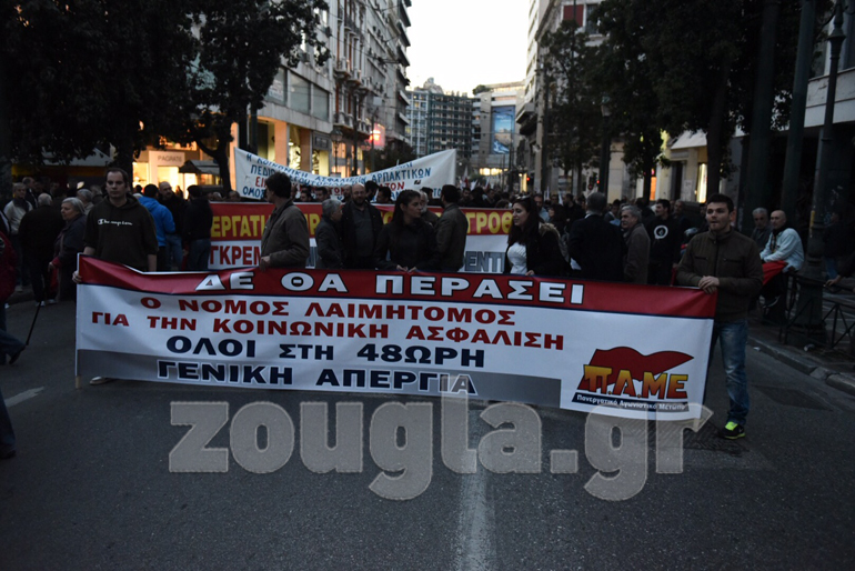 Συλλαλητήριο για το ασφαλιστικό πραγματοποίησε στις 19.00 το απόγευμα της Πέμπτης στην Ομόνοια το Πανεργατικό Αγωνιστικό Μέτωπο.