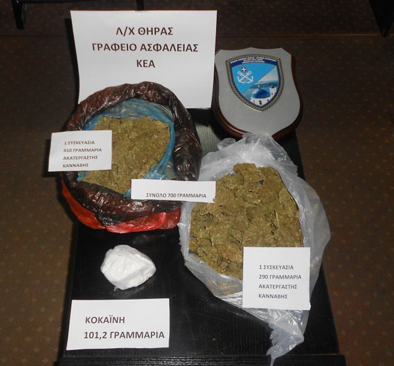Στον εντοπισμό ναρκωτικών ουσιών και τη σύλληψη ενός 30χρονου αλλοδαπού προέβησαν, βραδινές ώρες του Σαββάτου, τα στελέχη του Γραφείου Ασφαλείας με τη συνδρομή του Κλιμακίου Ειδικών Αποστολών του Λιμεναρχείου Θήρας.