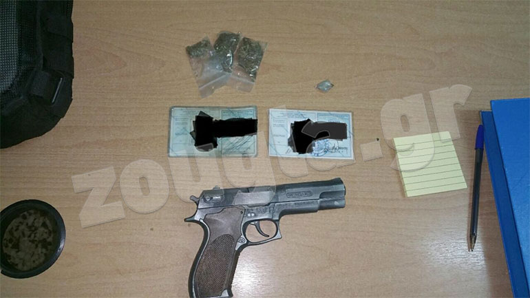 Σε έλεγχο που τους έκαναν βρέθηκαν στην κατοχή των δύο ανδρών και κατασχέθηκαν ένα πιστόλι ρέπλικα, δύο γραμμάρια σίσα, δέκα χάπια καθώς και εννέα γραμμάρια κάνναβη. Πρέπει να σημειωθεί ότι στη συγκεκριμένη περιοχή τον τελευταίο χρόνο τα κρούσματα κλοπών και ληστειών έχουν αυξηθεί δραματικά.