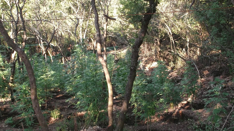 Παράλληλα οι καλλιεργητές είχαν διαμορφώσει, σε άλλη δάσωση πλαγιά, απέναντι από τη φυτεία, ειδικό χώρο τον οποίο χρησιμοποιούσαν ως παρατηρητήριο προκειμένου να μπορούν να εποπτεύουν το χώρο της καλλιέργειας των ναρκωτικών από απόσταση.
