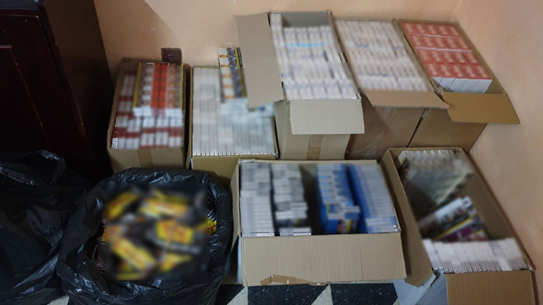 Από την περαιτέρω έρευνα στην οικία, από την οποία εξήλθαν άλλοι τρεις άντρες ξένης καταγωγής οι οποίοι και συνελήφθησαν, βρέθηκαν επιπλέον και κατασχέθηκαν 8.198 πακέτα λαθραίων τσιγάρων και 274 συσκευασίες λαθραίου καπνού.