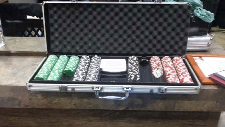 (2) μεταλλικές κασετίνες, που περιείχαν τράπουλες, (706) μάρκες, (1) ζευγάρι κρόταλα (τύπου «Νουτσάκο») κ.α.,
