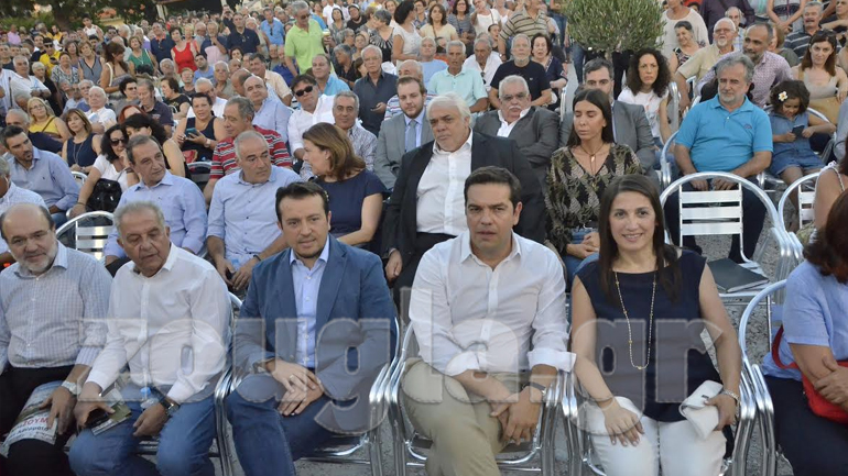 Και ενω όλα αυτά συνέβησαν πριν την ομιλία, ο Αλέξης Τσίπρας, λίγο αργότερα μίλησε στους συγκεντρωμένους για «καθημερινές μάχες στις οποίες αταλάντευτα θα βρισκόμαστε στην πρώτη γραμμή, μάχες για τη διεκδίκηση της δικαιοσύνης και της ισονομίας, απέναντι στη γραφειοκρατία και τη διαφθορά». Στην ομιλία του ο κ. Τσίπρας αναφέρθηκε επίσης αναλυτικά στην παραχώρηση της έκτασης 32 στρεμμάτων του Ασύρματου από το Δημόσιο στον Δήμο Αγίου Δημητρίου.
