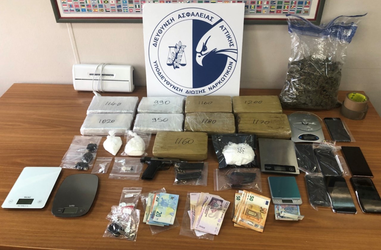 Ειδικότερα, σύμφωνα με την ΕΛΑΣ, ο 48χρονος αλλοδαπός και ο Έλληνας συνελήφθησαν να κατέχουν και για λογαριασμό των υπολοίπων, μέσα σε ταξί, πέντε αυτοσχέδιες νάιλον συσκευασίες που περιείχαν κοκαΐνη βάρους 5.870 γραμμαρίων με σκοπό την περαιτέρω διακίνησή της. Την συγκεκριμένη ποσότητα την προμηθεύτηκαν από τον 36χρονο συγκατηγορούμενό τους, ο οποίος κατείχε σε σπίτι, στην Αθήνα, ακατέργαστη κάνναβη βάρους 900 γραμμαρίων, κοκαΐνη βάρους 85 γραμμαρίων και ένα πιστόλι.