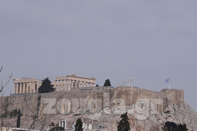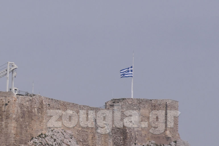 Μεσίστια κυμάτιζε από το πρωί της Τετάρτης η ελληνική σημαία στον βράχο της Ακρόπολης, καθώς σήμερα τελέστηκε η κηδεία του Μανώλη Γλέζου.