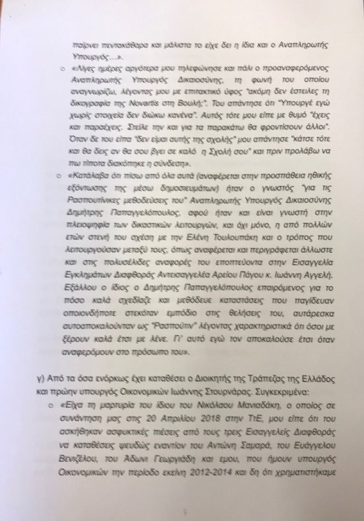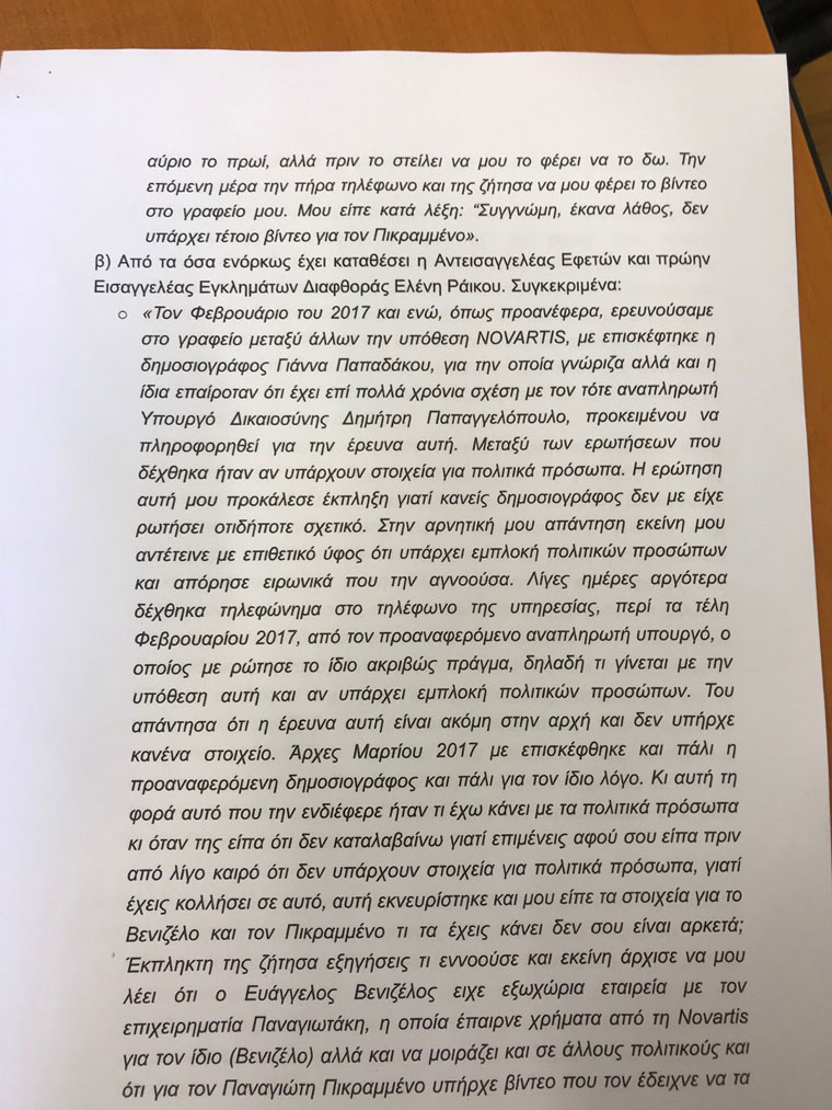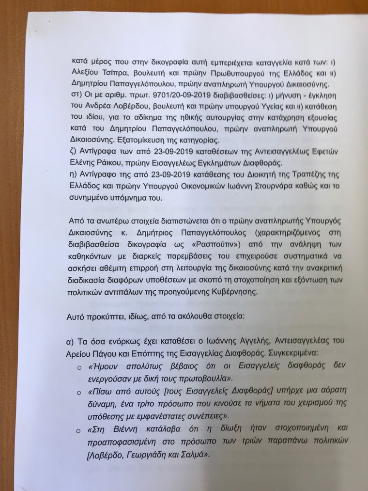 Έντεκα ακριβώς μήνες από τότε που μέσω κύκλων προσκείμενων στην κα Ράικου γινόταν για πρώτη φορά λόγος για τον διαβόητο «Ρασπούτιν», ο οποίος, «εκμεταλλευόμενος την πολιτική του ισχύ, με ύφος “νταβατζή”», υποδείκνυε «πως πρέπει να διεκπεραιωθούν συγκεκριμένες κρίσιμες υποθέσεις», η πρώην επικεφαλής της Εισαγγελίας Διαφθοράς κατέθεσε συγκεκριμένα έγγραφα που ενισχύουν τις βαριές κατηγορίες της σε βάρος του κ. Παπαγγελόπουλου.