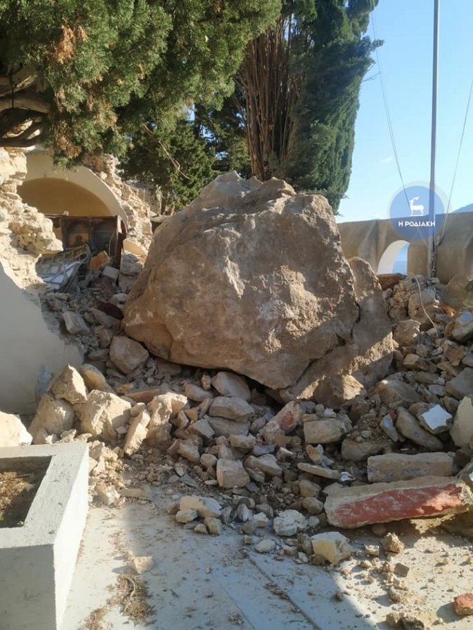 Το παρήγορο είναι πως ο βράχος άφησε άθικτη την Αγία Τράπεζα, δυστυχώς όμως, σύμφωνα με τον κ. Μερκούριο Φαρμακίδη, στην οικογένεια του οποίου ανήκει το μοναστήρι, υπάρχει ακόμη ένας βράχος έτοιμος να καταπλακώσει ό,τι έχει απομείνει στο μοναστήρι, ενώ σύμφωνα πάλι με τον ίδιο έχει δοθεί εντολή από τον μητροπολίτη Σύμης προκειμένου ειδικά συνεργεία να καταφέρουν να γλυτώσουν το μοναστήρι από την καταστροφή.