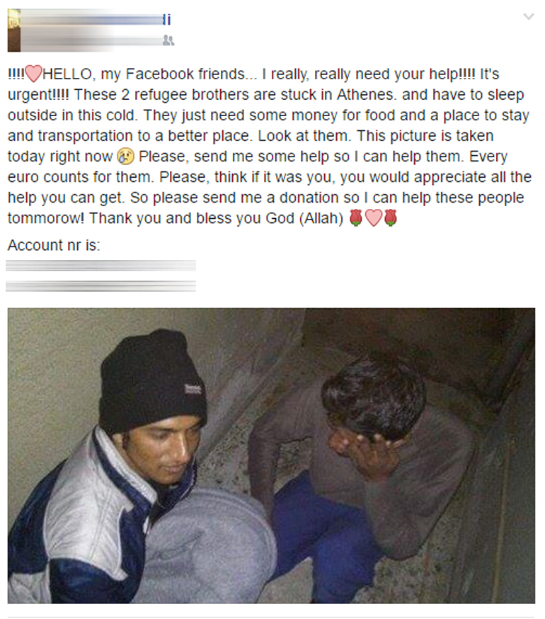 Μεταξύ των ευσυνείδητων αλληλέγγυων και εθελοντών υπάρχουν και κάποιοι που εκμεταλλεύονται τους δυστυχισμένους ανθρώπους, παίζοντας παιχνίδια στην πλάτη τους. Υπάρχουν κι άλλοι, οι οποίοι ζητούν χωρίς να δίνουν. Καταγγελία που έφτασε στο zougla.gr αφορά μία Μαροκινή που απευθύνει εκκλήσεις για δωρεές και συγκέντρωση χρημάτων.
