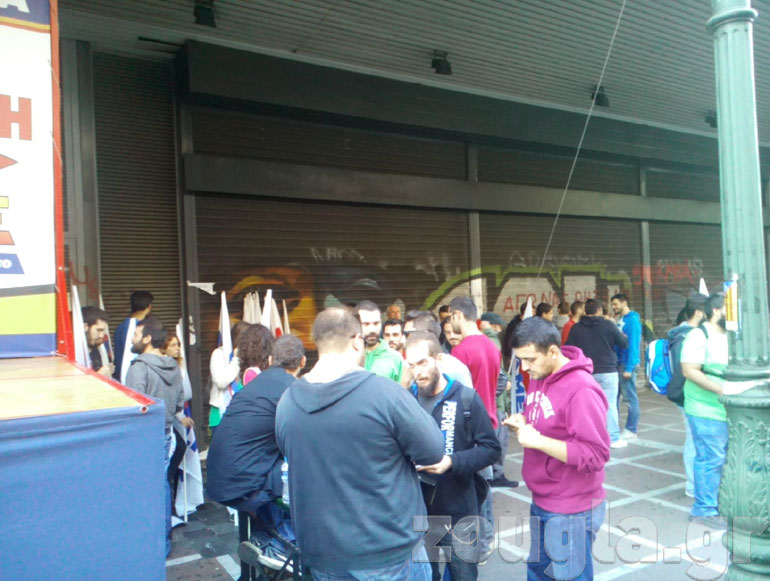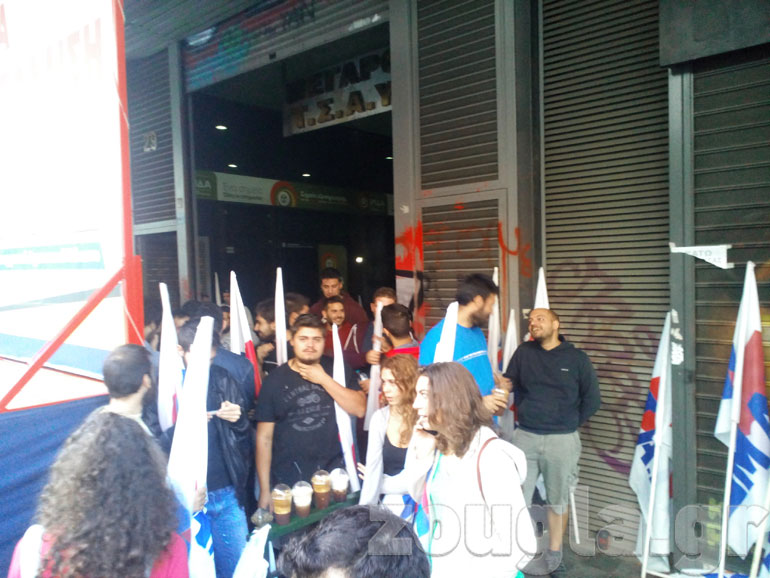 Συμβολική κατάληψη στο Υπουργείο Εργασίας πραγματοποιούν από τις 06.30 το πρωί μέλη του ΠΑΜΕ, αντιδρώντας στη «διάλυση της κοινωνικής ασφάλισης».