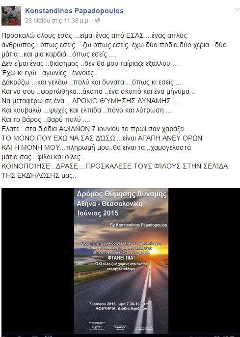 Όπως αναφέρει ο ίδιος στην προσωπική του σελίδα στο facebook: