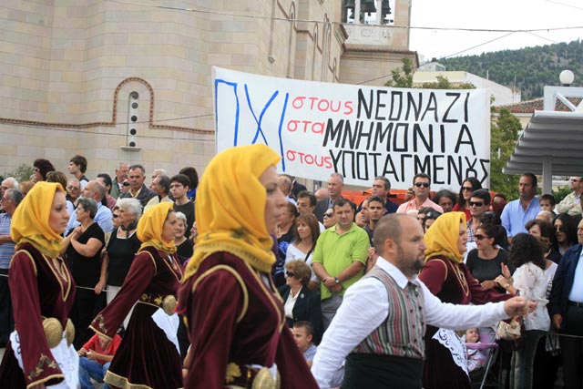 Στις εορταστικές εκδηλώσεις στο Ναύπλιο, την κυβέρνηση εκπροσώπησε ο υφυπουργός Ανάπτυξης Αθανάσιος Σκορδάς, ο οποίος μαζί με τον αντιπεριφερειάρχη Αργολίδας Τάσο Χειβιδόπουλο κατά την κατάθεση στεφάνων, αποδοκιμάστηκαν από μια ομάδα μελών του Αντιφασιστικού Μετώπου.
