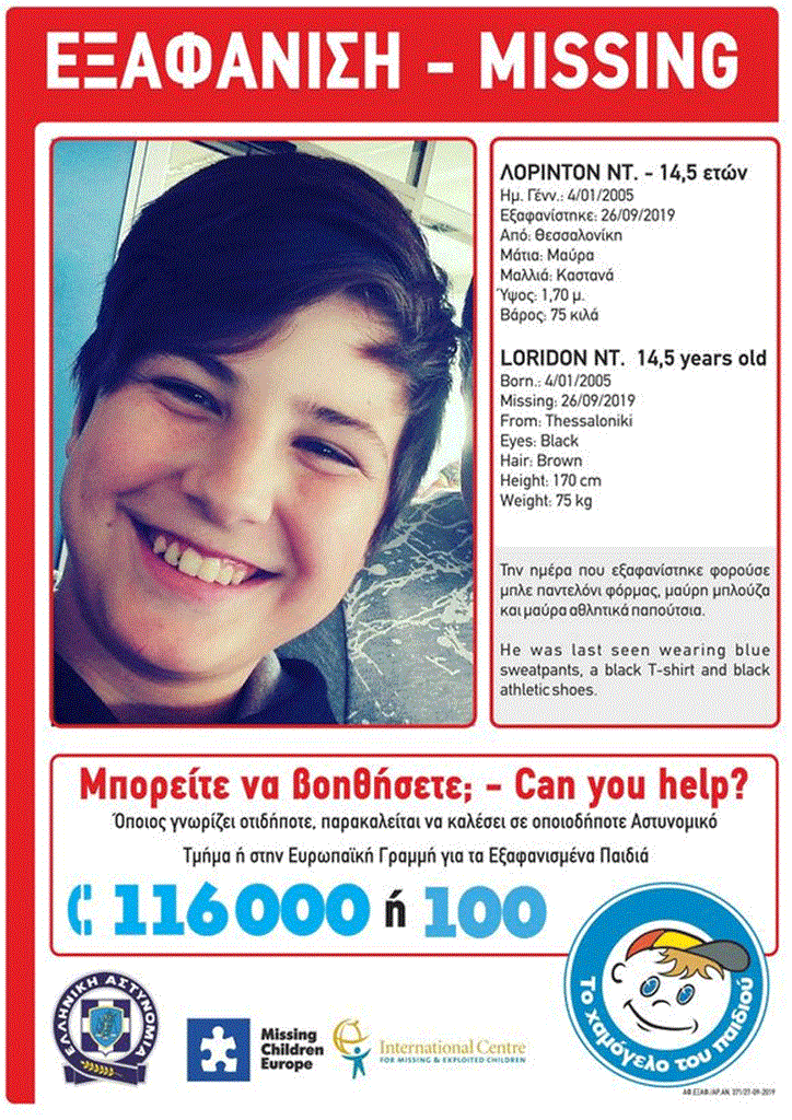 Οποιοσδήποτε έχει κάποια πληροφορία, παρακαλείται να επικοινωνήσει τηλεφωνικά με «Το Χαμόγελο του Παιδιού», όλο το 24ωρο, στην «Ευρωπαϊκή Γραμμή για τα Εξαφανισμένα Παιδιά 116000» καθώς και σε όλα τα Αστυνομικά Τμήματα της χώρας.