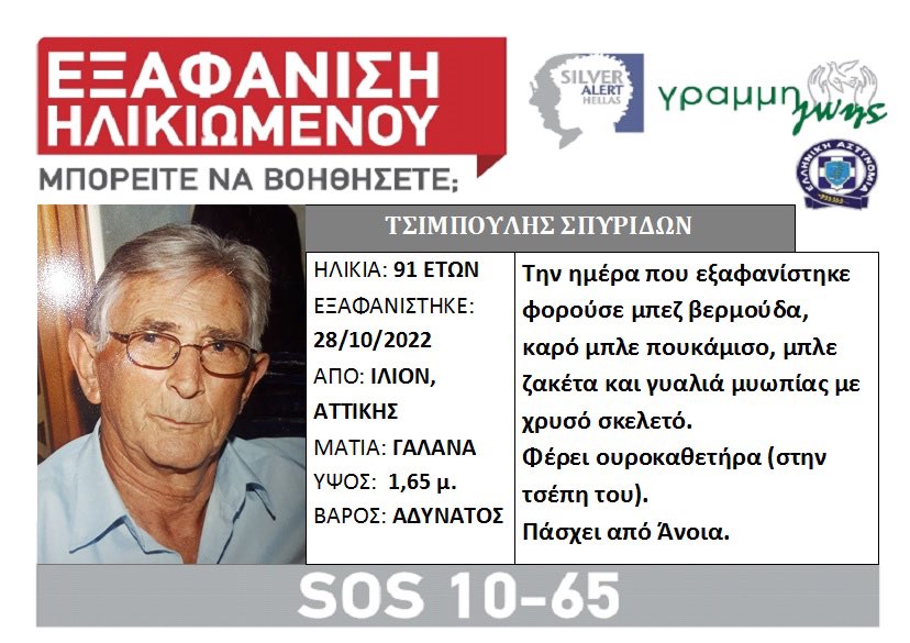 Εάν γνωρίζετε κάτι επικοινωνήστε με την υπηρεσία Silver Alert, όλο το 24ωρο, στην Εθνική Γραμμή SOS 1065.