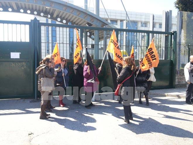 Έξω από το υπουργείο συγκεντρώθηκαν περίπου 70 άτομα.
