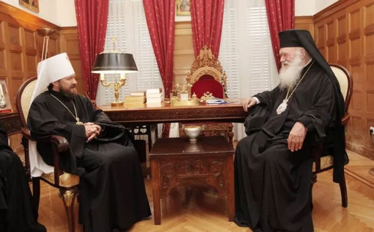 Τον Αρχιεπίσκοπο Αθηνών και πάσης Ελλάδος Ιερώνυμο επισκέφθηκε ο επικεφαλής του Τμήματος Εξωτερικών Σχέσεων του Πατριαρχείου Μόσχας, μητροπολίτης Βολοκολάμσκ, Ιλαρίων, με τον οποίο συζήτησαν θέματα κοινού ενδιαφέροντος.