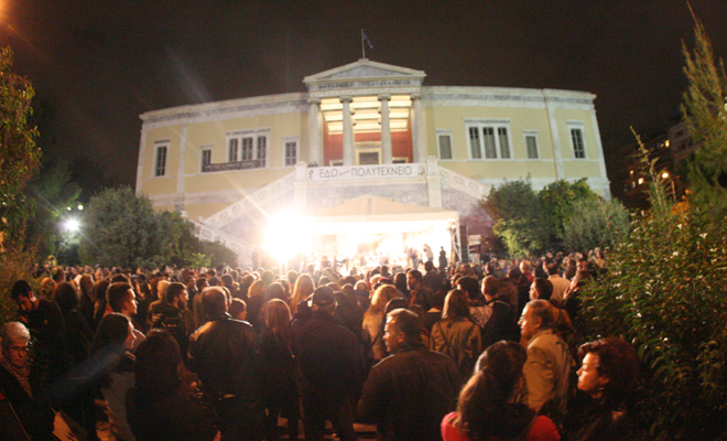 Συναυλία με λαϊκή ορχήστρα του Μίκη Θεοδωράκη στο Πολυτεχνείο συνδιοργάνωσαν οι εργαζόμενοι της ΕΡΤ, του Πολυτεχνείου, του ΕΚΠΑ και η Επιτροπή Εορτασμού 17ης Νοέμβρη. Η συναυλία ξεκίνησε στις 19:00 και ολοκληρώθηκε λίγα λεπτά μετά τις 21:00.