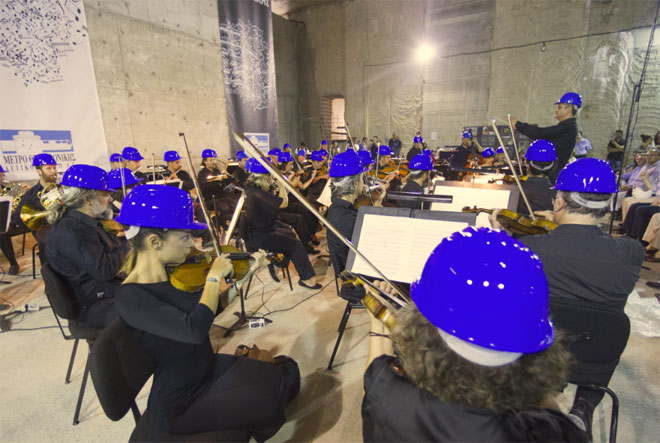Μια μοναδική συναυλία έδωσε, σήμερα, η Κρατική Ορχήστρα Θεσσαλονίκης, στον υπόγειο σταθμό «Πανεπιστήμιο» του μετρό Θεσσαλονίκης.
