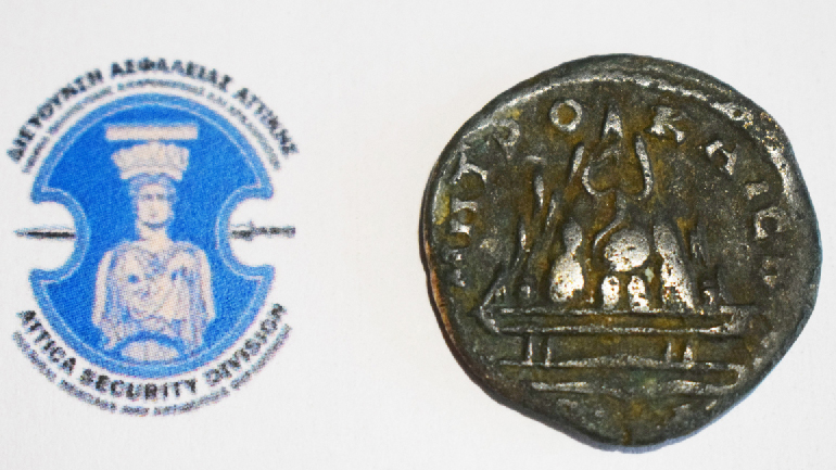 Ειδικότερα, κλιμάκιο αστυνομικών του Τμήματος Πολιτιστικής Κληρονομιάς και Αρχαιοτήτων της Διεύθυνσης Ασφάλειας Αττικής, εντόπισε στο Λαύριο τον 42χρονο και μετά από έρευνα στην οικία του βρέθηκε και κατασχέθηκε το αρχαίο νόμισμα.