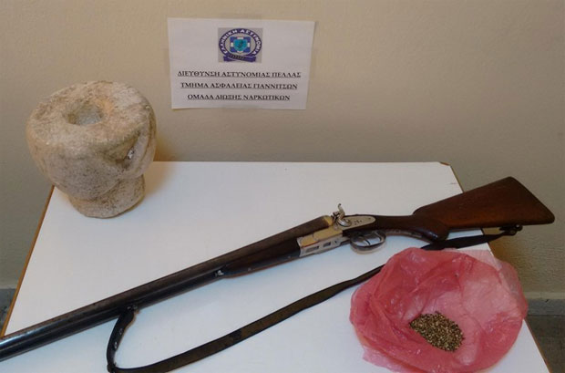 Συνελήφθη ένας 60χρονος για κατοχή αρχαίου αντικειμένου και καλλιέργεια κάνναβης στα Γιαννιτσά Πέλλας. Η σύλληψη έγινε το μεσημέρι της Δευτέρας από αστυνομικούς της Ομάδας Δίωξης Ναρκωτικών του Τμήματος Ασφάλειας Γιαννιτσών.