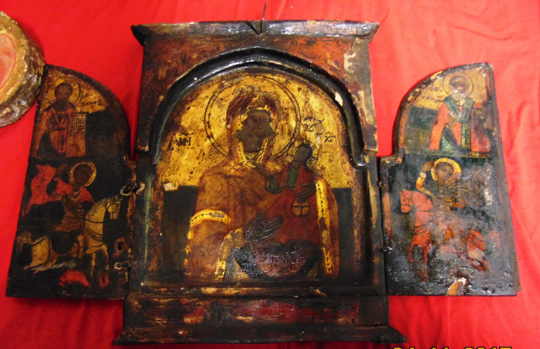 • Τρίπτυχο το οποίο φέρει επιζωγράφιση (πιθανώς 19ου αιώνα),