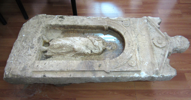 – Μία μαρμάρινη επιτύμβια στήλη ρωμαϊκών χρόνων με αετωματική επίστεψη. Φέρει επιγραφή στο γείσο «ΚΑΛΛΩΝ ΦΙΛΟΚΡΑΤΟΥΣ». Φέρει ανάγλυφη μορφή όρθιου ανδρός με χιτώνα, ελλιπής κατά την κεφαλή. Το συνολικό ύψος της στήλης είναι 1,32 μ., το μέγιστο πλάτος της στη βάση 0,57 μ. και το πάχος της 0,10 μ.