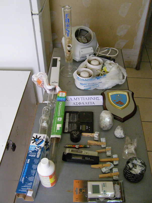 • μία μεταλλική πίπα καπνίσματος κάνναβης.