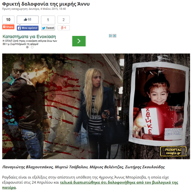 Στα χέρια της αστυνομίας βρίσκεται η μητέρα της Άννυ, του 4χρονου παιδιού που δολοφονήθηκε από τον βιολογικό της πατέρα.