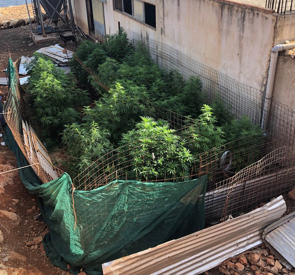 Κατά την έρευνα βρήκαν έξω από τα ποιμνιοστάσιά τους έναν ειδικά διαμορφωμένο χώρο με λαμαρίνες που μέσα υπήρχαν 64 δενδρύλλια κάνναβης ύψους έως 3 μέτρων.