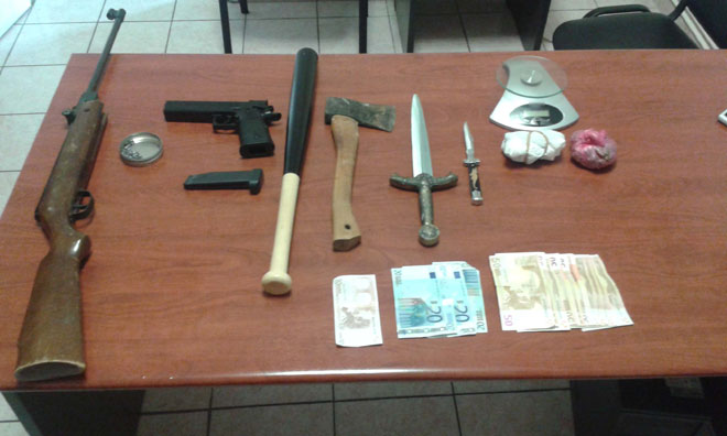 Συνελήφθησαν την Πέμπτη από δικυκλιστές αστυνομικούς της ομάδας ΔΙ.ΑΣ. δύο άνδρες, ηλικίας 40 και 22 ετών (πατέρας και γιος), εις βάρος των οποίων σχηματίσθηκε δικογραφία για παραβάσεις των νόμων περί εξαρτησιογόνων ουσιών, περί όπλων και απείθεια.