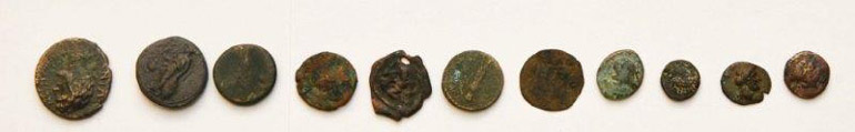 -Δεκαοκτώ χάλκινα νομίσματα, κυρίως Ρωμαϊκής Εποχής
