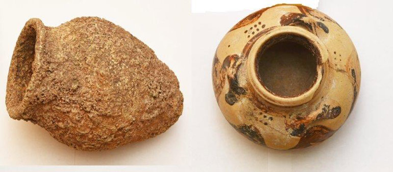 -Ένας πήλινος ενάλιος αμφορίσκος