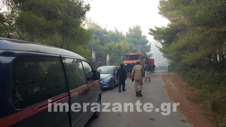 Συνολικά στη Ζάκυνθο επιχειρούν τουλάχιστον 120 πυροσβέστες, με 30 οχήματα και 30 άτομα πεζοπόρο τμήμα, ενώ από αέρος συνδράμει ένα ελικόπτερο.