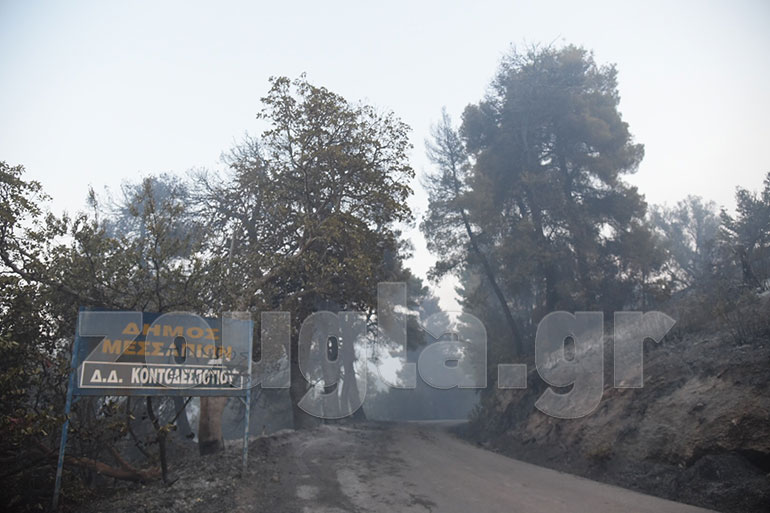 Χτες, Κυριακή, ολοκληρώθηκε η εκκένωση του χωριού Κοντοδεσπότι. Επίσης, εκκενώθηκε το Μοναστήρι της Παναγιάς της Γοργοεπήκοου και, προληπτικά, μία κατασκήνωση στην περιοχή Δάφνη, αρκετά μακριά από το μέτωπο της φωτιάς.